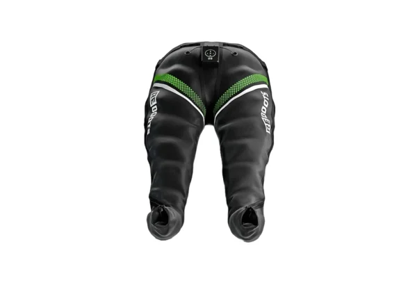 Son système de pantalon enveloppe entièrement vos jambes, des pieds jusqu’à la zone des fessiers, pour une thérapie complète.