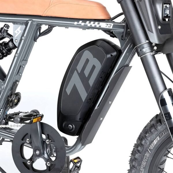 Bien que puissante, la PRO 1000 est conçue pour s’intégrer de façon fluide dans un vélo Super73 S ou R. Le mécanisme d’auto-verrouillage, l’emplacement prévu et la compatibilité avec les chargeurs standards permettent une installation simple, rapide et sans ajustement complexe.