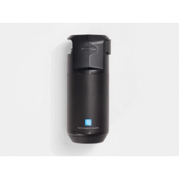 Elle trouve parfaitement sa place dans un porte-bidon à accès latéral Bontrager dans le triangle principal, à proximité du port de charge, et elle est maintenue en position à l’aide d’une sangle (câble Range Extender et sangle vendus séparément).