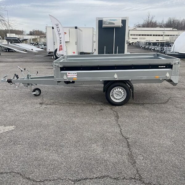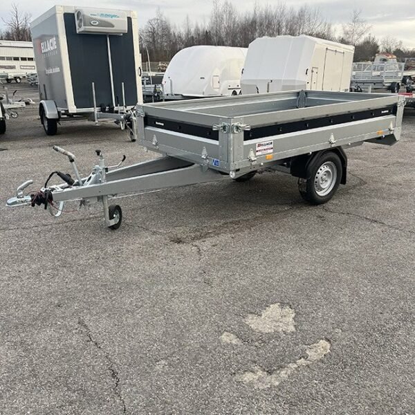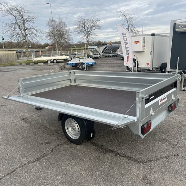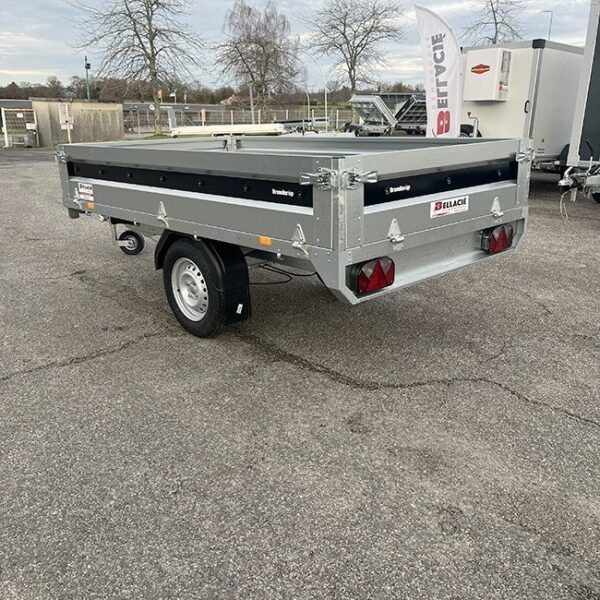 Grâce à ses roues positionnées sous le plateau, elle offre une largeur de chargement optimale de 143 cm, idéale pour transporter des charges volumineuses. De plus, son essieu freiné de 900 kg garantit une sécurité accrue lors des déplacements.