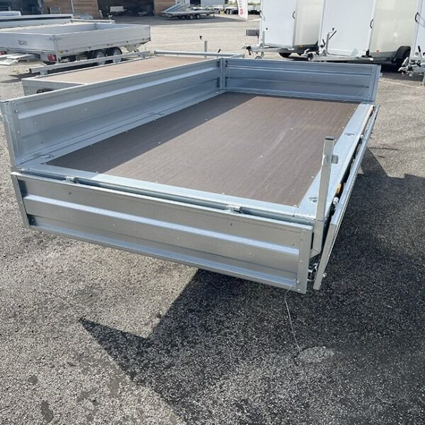 Avec ses dimensions utiles de 309 x 169 cm et un PTAC de 2000 kg, cette remorque allie robustesse, capacité de charge élevée et fonctionnalité.