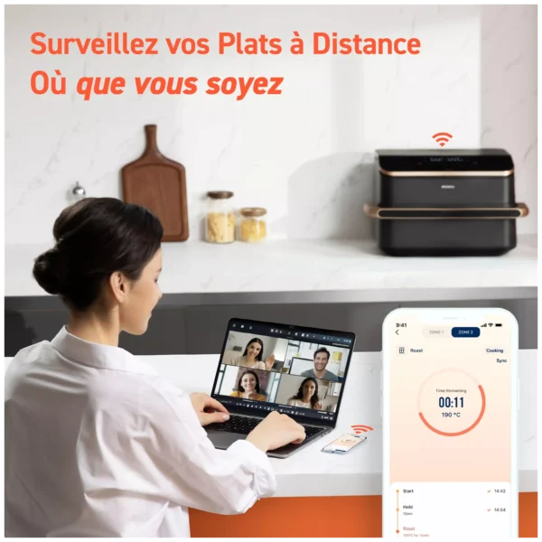 L’airfryer COSORI est connecté à l’application VeSync, offrant un pilotage à distance, des recettes intégrées, des alertes et un suivi en temps réel. Réduisant jusqu’à 85 % de matières grasses par rapport à une friture classique, elle assure une cuisine plus saine. Les paniers et plaques antiadhésifs sont compatibles lave-vaisselle, facilitant l’entretien.