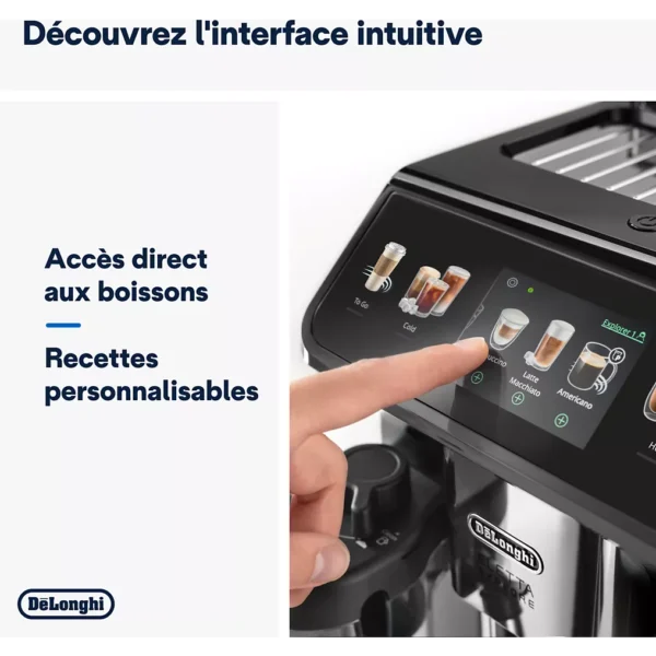 DeLonghi a conçu cette machine pour faciliter l’entretien et assurer une hygiène irréprochable. Les circuits de lait bénéficient d’un rinçage automatique après chaque utilisation, tandis que le groupe d’extraction et les réservoirs sont amovibles pour un nettoyage complet. Le détartrage est guidé par l’écran tactile, simplifiant l’entretien et garantissant une machine durable sur le long terme.