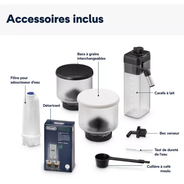 - Système de boissons lactées : carafe à lait intégrée pour une préparation automatique
