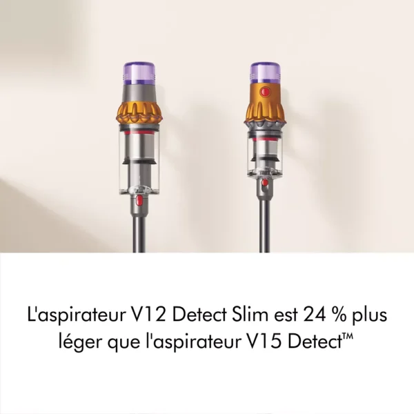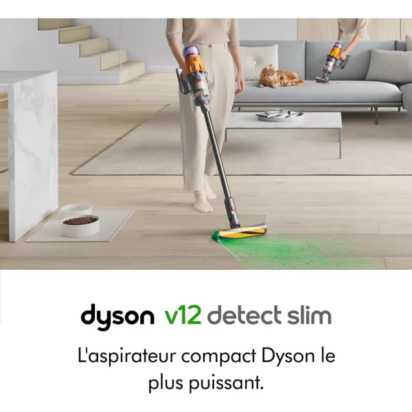 L’innovation phare du V12 est sa technologie “Detect Slim”, qui utilise un laser ultrafin pour révéler la poussière invisible sur les sols durs. Cette fonctionnalité transforme le nettoyage en une expérience presque scientifique, car elle permet de visualiser la poussière que l’œil humain ne peut détecter.