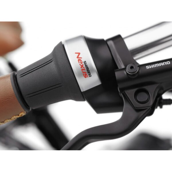 Le Townie Commute Go! 5i adopte une transmission Shimano Nexus Inter-5i intégrée dans le moyeu arrière. Cette solution offre une grande fiabilité, un entretien réduit et des changements de vitesse souples, même à l’arrêt. Grâce à ce système, le cycliste n’a plus à se soucier du dérailleur ou des risques de déraillement : tout est interne et protégé des éléments extérieurs.