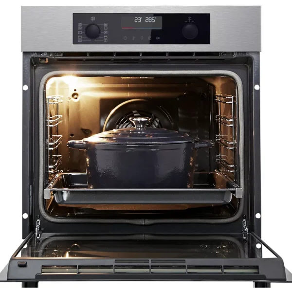 L’ouverture se fait via une poignée discrète. Le panneau de commande reste accessible et lisible. Même dans une cuisine de petite surface, le four trouve sa place sans encombrer. Ce minimalisme esthétique en fait un choix pratique pour les logements compacts ou les budgets maîtrisés.