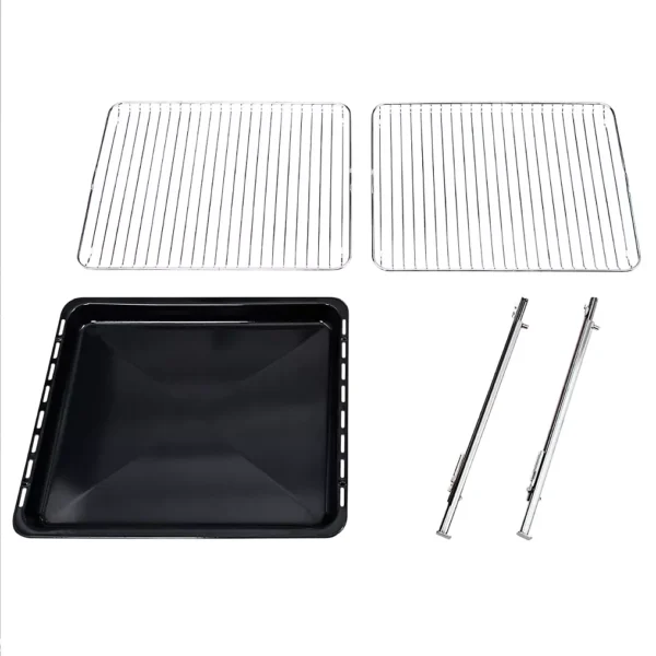 - Rails téléscopiquesils permettent d’accéder à vos plats en les faisant coulisser en dehors de l’enceinte de cuisson en évitant les risques de basculement. Vous pourrez arroser confortablement votre rôti ou retourner facilement vos plats sans risque de brûlure.