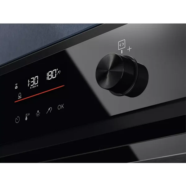 Le panneau de commande est simple à prendre en main. Le Four Pyro ELECTROLUX EOD6P67WH SteamBake affiche clairement les réglages en cours. Les boutons réagissent rapidement. Les modes de cuisson se choisissent en quelques secondes.