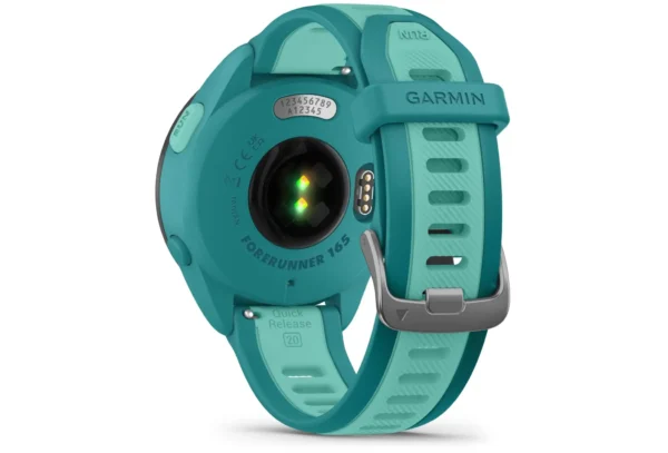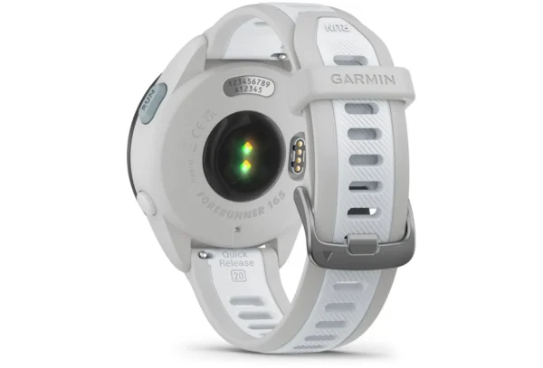 La Garmin Forerunner 165 Music adopte un design moderne et minimaliste. Le boîtier en polymère renforcé de fibres la rend à la fois robuste et ultra-légère. Avec un poids d’environ 39 grammes, elle se fait presque oublier pendant l’effort, ce qui en fait un choix idéal pour les longues sorties de course à pied.