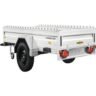Équipée d’un système de freinage performant, cette remorque offre une sécurité accrue lors du transport de charges importantes. Les 6 anneaux d’arrimage intégrés dans les bordures des parois latérales permettent de fixer solidement les marchandises, avec une force de traction certifiée Dekra de 400 kg par anneau. Par ailleurs, sa vitesse maximale admissible de 100 km/h assure une conduite fluide et sécurisée sur autoroute.