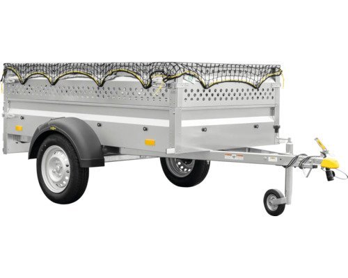 La remorque Humbaur Steely FR est livrée avec un plateau de chargement, un filet pour remorque et une roue jockey, ce qui en fait une solution complète et prête à l’emploi. Les 4 anneaux d’arrimage intégrés permettent de fixer solidement votre chargement, tandis que l’éclairage multifonction et la prise à 13 pôles garantissent une visibilité et une conformité optimales sur la route.
