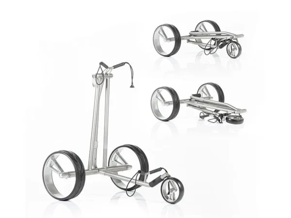 Avec ses jantes élégantes à un seul rayon, ce chariot électrique semble planer sur le fairway ! Son cadre très fin en titane, mis en relief par un monobras sur la roue avant, et ses jantes design rendent ce modèle unique. Équipé d’un pack-technique de dernière génération, le chariot vous offre un confort maximal sur le parcours. Les deux moteurs « brushless » permettent de déplacer le chariot de façon silencieuse, et sont équipés d’un double frein de parking qui stationne le chariot même sur des terrains escarpés.
