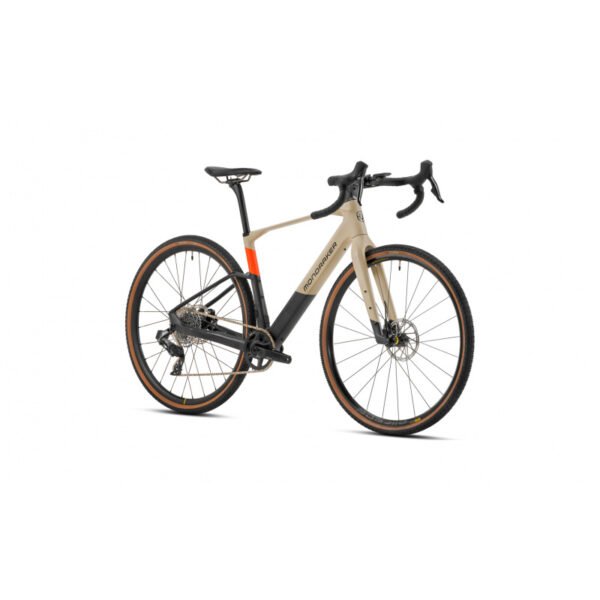 Le Dusty R 2024 adopte une approche minimaliste en matière de suspension. Sa fourche carbone rigide contribue à la précision du pilotage et à la légèreté du vélo. Cependant, le confort n’est pas oublié : la flexibilité du cadre, les sections larges des pneus et la géométrie travaillée absorbent naturellement les irrégularités du terrain.