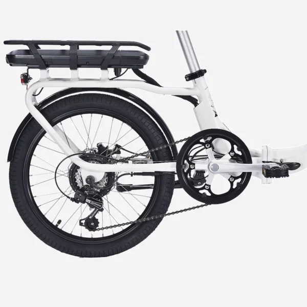 Pensé pour une utilisation urbaine quotidienne et la prise de transports, le E-FLEX 2.0 est le vélo électrique pliable de taille unique. Il est équipé d’une batterie lithium-ion 36V 345Wh logée dans le porte-bagage et d’un moteur arrière de 250W/45Nm.