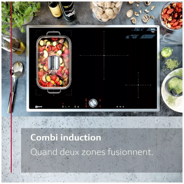 La Plaque induction NEFF T58FHS1L0 est pensée pour les particuliers exigeants qui souhaitent un appareil capable de s’adapter à toutes les situations : cuisson rapide, mijotage précis, utilisation de grandes casseroles ou cuisson simultanée de plusieurs plats.