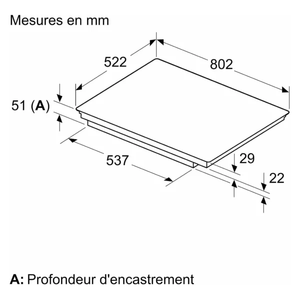 | Dimensions | Dimensions l x h x p 80.2 x 5.1 x 52.2 cm, LxHxP (encastrement) 75 x 50 x 5.1 cm |