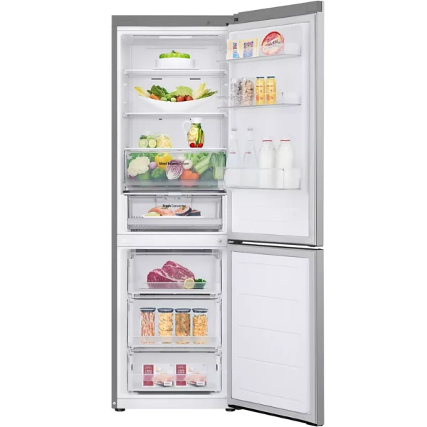 L’intérieur du Réfrigérateur combiné LG GBV3110EPY est conçu pour offrir un maximum de confort et de flexibilité. Chaque compartiment est pensé pour accueillir différents types d’aliments et faciliter leur accès. Le réfrigérateur offre un espace idéal pour les fruits, légumes, produits laitiers, viandes et plats préparés, tandis que le congélateur assure une conservation efficace des surgelés.