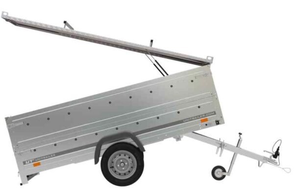 Remorque légère avec couvercle UNITRAILER Garden Trailer 264 KIPP avec PTAC jusqu’à 750 kg. Le plus gros avantage de la remorque présentée est sa surface de transport de 2641 x 1256 mmIl dispose d’une planche arrière ouvrante, grâce à laquelle le chargement et le déchargement sont possibles en quelques minutes ! Grâce au timon inclinable, il peut être placé verticalement sur la face arrière à n’importe quel endroit.