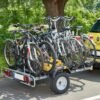 - Les bras de support peuvent être abaissés pour faciliter le rangement de la remorque porte-vélos