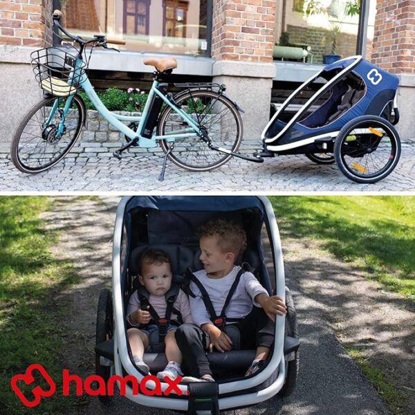 | Nom du Produit | Hamax Outback Remorque Vélo pour 2 Enfants – Navy / White |
