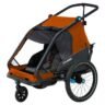 Cette remorque se transforme facilement en poussette grâce à son kit de conversion optionnel. Le système d’attache universel permet une fixation rapide sur la plupart des vélos. Un grand coffre de rangement offre un espace supplémentaire pour les affaires des enfants. Les roues amovibles simplifient l’entretien et le nettoyage. Enfin, le pare-soleil intégré protège les petits des rayons UV.