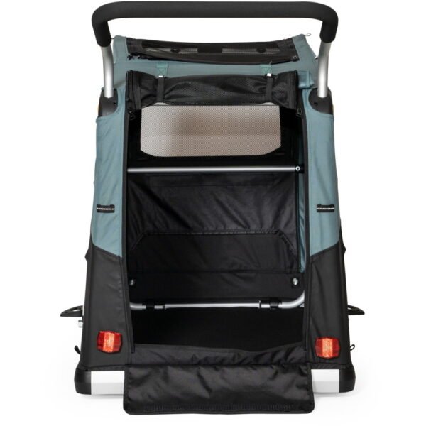 Le Remorque vélo pour chien Burley Bark Ranger XL – noir/turquoise mat se distingue par son look élégant en noir et turquoise mat, parfait pour les propriétaires exigeants. Son cadre solide et son plancher fixe assurent une stabilité maximale, même sur les terrains accidentés. De plus, la remorque dispose d’une grande ouverture pour faciliter l’accès de votre chien. Les matériaux bluesign® certifiés garantissent une fabrication respectueuse de l’environnement.