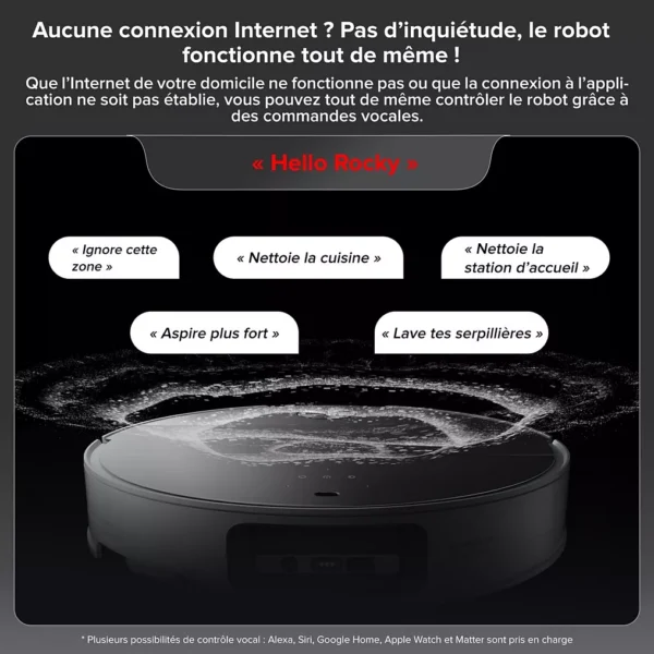 Le Saros 10 est compatible avec les applications mobiles et assistants vocaux, permettant de programmer des cycles de nettoyage, définir des zones spécifiques à nettoyer ou à éviter, et contrôler l’appareil à distance.