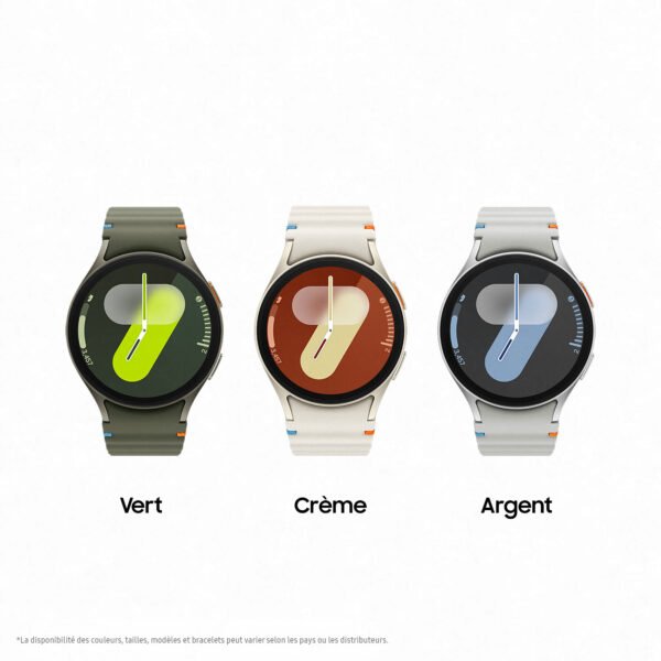Samsung Galaxy Watch7 4G – aluminium – étanche IP6X – GPS – RAM 2 Go – écran tactile Super AMOLED 1.5″ – 32 Go – NFC/Wi-Fi/Bluetooth 5.3 – 300 mAh – Android Wear 5.0 – bracelet sport en silicone
