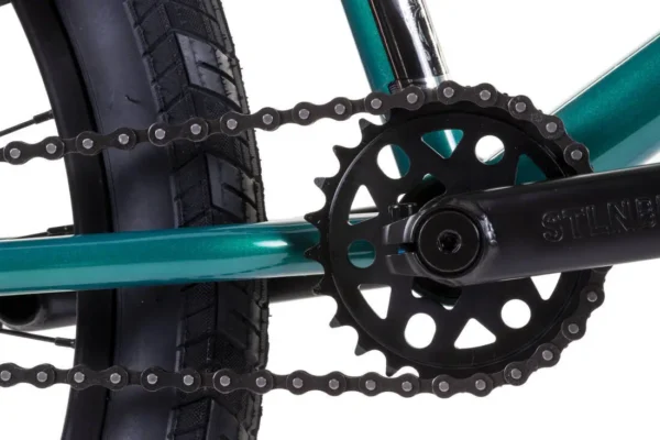 Les bases cintrées en S permettent d’installer des pneus plus larges, ce qui améliore la traction et la stabilité. Cette géométrie encourage une conduite fluide et confortable sur les terrains urbains et les pistes de BMX. Le poids total du vélo est d’environ 11,8 kg, facilitant les sauts et rotations.