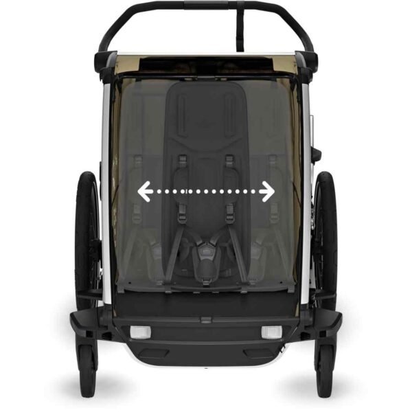 Avec une charge maximale de 42 kg, ce modèle convient aux enfants de différents âges, garantissant un transport sûr et confortable. Les sièges rembourrés et ajustables assurent un excellent maintien, tandis que la largeur des épaules de 55,5 cm offre un espace optimal. De plus, la remorque se transforme facilement en poussette, ce qui en fait un accessoire pratique pour toutes vos activités.