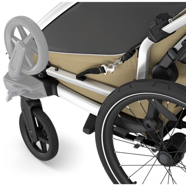 Elle te permet de passer facilement du vélo à la marche – avec une rotation rapide des roues d’une seule main, la remorque vélo se transforme en poussette en quelques secondes.