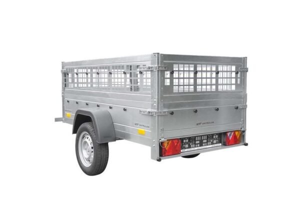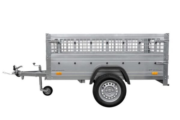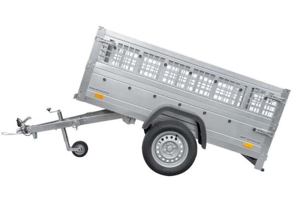 Cette remorque présente des dimensions compactes mais une capacité optimisée. Son châssis renforcé assure une grande stabilité même en charge maximale. Le basculement simplifie le déchargement des matériaux encombrants. Les ridelles grillagées augmentent la hauteur utile du chargement. La roue jockey intégrée facilite son attelage à tous types de véhicules. Son essieu robuste absorbe efficacement les chocs et vibrations. La structure galvanisée protège contre les intempéries et l’usure du temps. Un modèle conçu pour une utilisation prolongée et sécurisée.