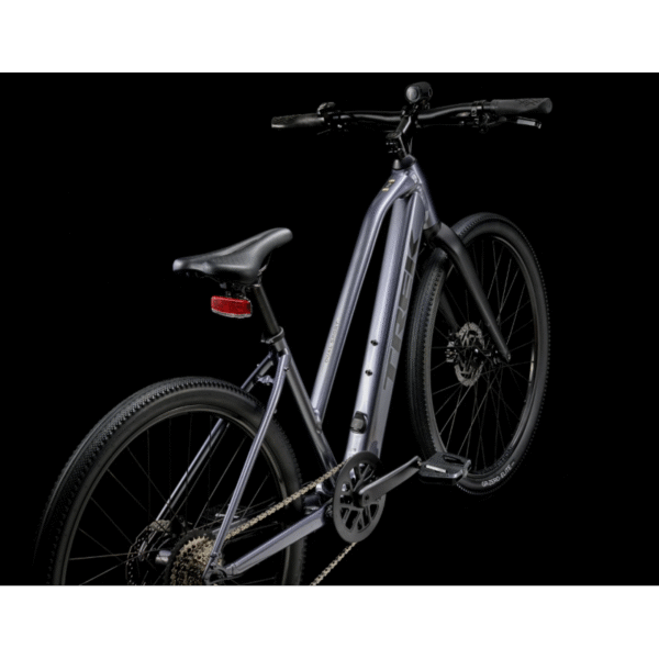 Le cadre Stagger est une signature visuelle forte de Trek. Il se distingue par un tube supérieur abaissé, facilitant l’enjambement du vélo. Cela apporte un réel confort d’utilisation, notamment pour les personnes recherchant un vélo facile à monter et descendre, ou celles qui effectuent des arrêts fréquents en ville.
