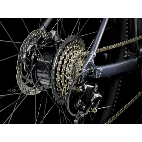 Fabriqué en aluminium Alpha Gold, un matériau exclusif à Trek, le cadre allie légèreté et solidité. Ce type d’aluminium est hydroformé pour offrir une résistance maximale tout en maintenant un poids réduit. Résultat : une conduite agile et fluide, même en montée ou sur de longues distances.