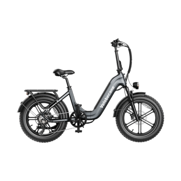 Le Velobecane Navad n’est pas un simple vélo pliant : c’est un fat bike à assistance électrique, capable d’évoluer sur des terrains où les vélos classiques peinent à suivre. Ses pneus extra-larges de 20 x 4 pouces assurent une adhérence maximale sur le sable, la neige, les pavés ou la boue.