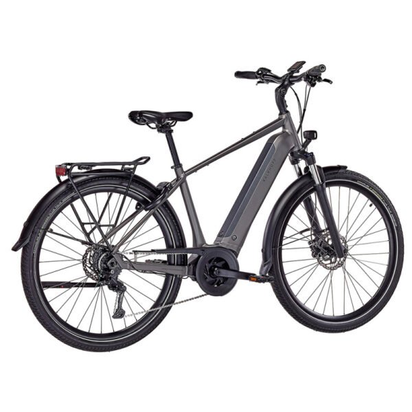 Ce Kalkhoff supporte vos sacoches de randonnée, une caisse ou un panier, sur son porte-bagages MIK. Il utilise des éclairages Herrmans avec un puissant feu avant Nordic MR5 de 40 lux. Les garde-boue, la béquille et l’antivol de cadre font partie de l’équipement de série.