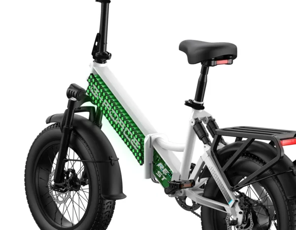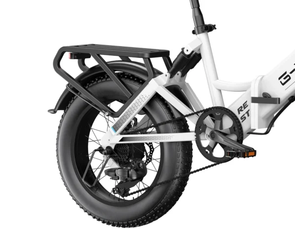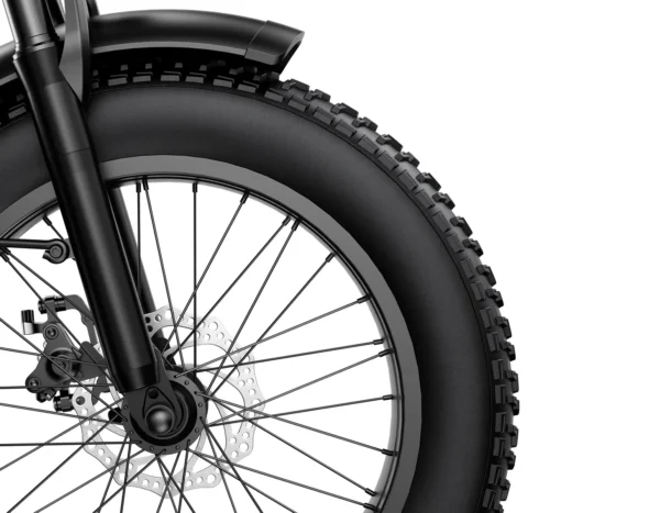 - Pneus tout-terrain Fat : parcourez n’importe quelle surface en toute confiance grâce à des pneus Fat de 4 pouces qui adhèrent solidement au sable, à la boue ou à la neige, améliorant ainsi la stabilité et la sécurité sur divers terrains.