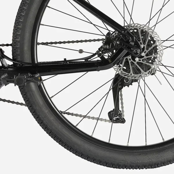 Le pédalier spécifique, renforcé pour supporter la puissance d’assistance, assure une transmission directe de l’énergie, sans perte de rendement. Le dérailleur arrière Deore, combiné à une cassette 11-46 dents, offre une large plage de rapports permettant de s’adapter aussi bien aux montées raides qu’aux descentes rapides.