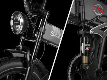 Pour un VTT électrique, la suspension est un critère déterminant. Le SAMEBIKE RS-A02 possède une suspension avant robuste et des pneus larges offrant une excellente adhérence sur les terrains accidentés. Ces éléments assurent une absorption optimale des chocs et un confort de conduite inégalé.