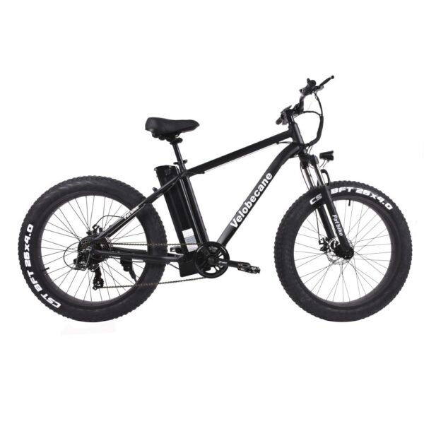 Avec ses roues de 26 pouces et des pneus de 4″, le vélo électrique Velobecane Fatbike sera le vélo électrique idéal pour rouler sur des terrains rudes ou neigeux.