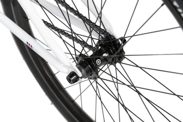 Les jantes doubles paroi sont conçues pour supporter les sauts et tricks. Les pneus Tioga Power Block offrent une adhérence élevée sur tous terrains. Cette combinaison optimise la tenue et la précision des trajectoires.