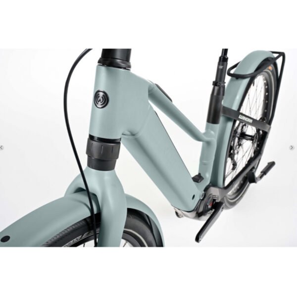 Le cadre adopte un design “Diamond Frame” moderne, en aluminium hydroformé de haute qualité. Cette conception permet de concilier solidité, résistance à la torsion et confort sur longue distance. Le positionnement du moteur, de la batterie et du câblage a été étudié pour maintenir un centre de gravité bas, garantissant ainsi une stabilité parfaite, que ce soit en milieu urbain dense ou sur des pistes cyclables rapides.