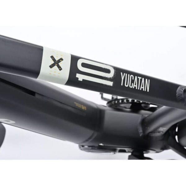 Visuellement, le Yucatan X10 arbore une allure dynamique, avec des lignes fluides et épurées. L’intégration complète de la batterie dans le tube diagonal renforce l’esthétique premium tout en protégeant les composants de la poussière et de l’humidité.